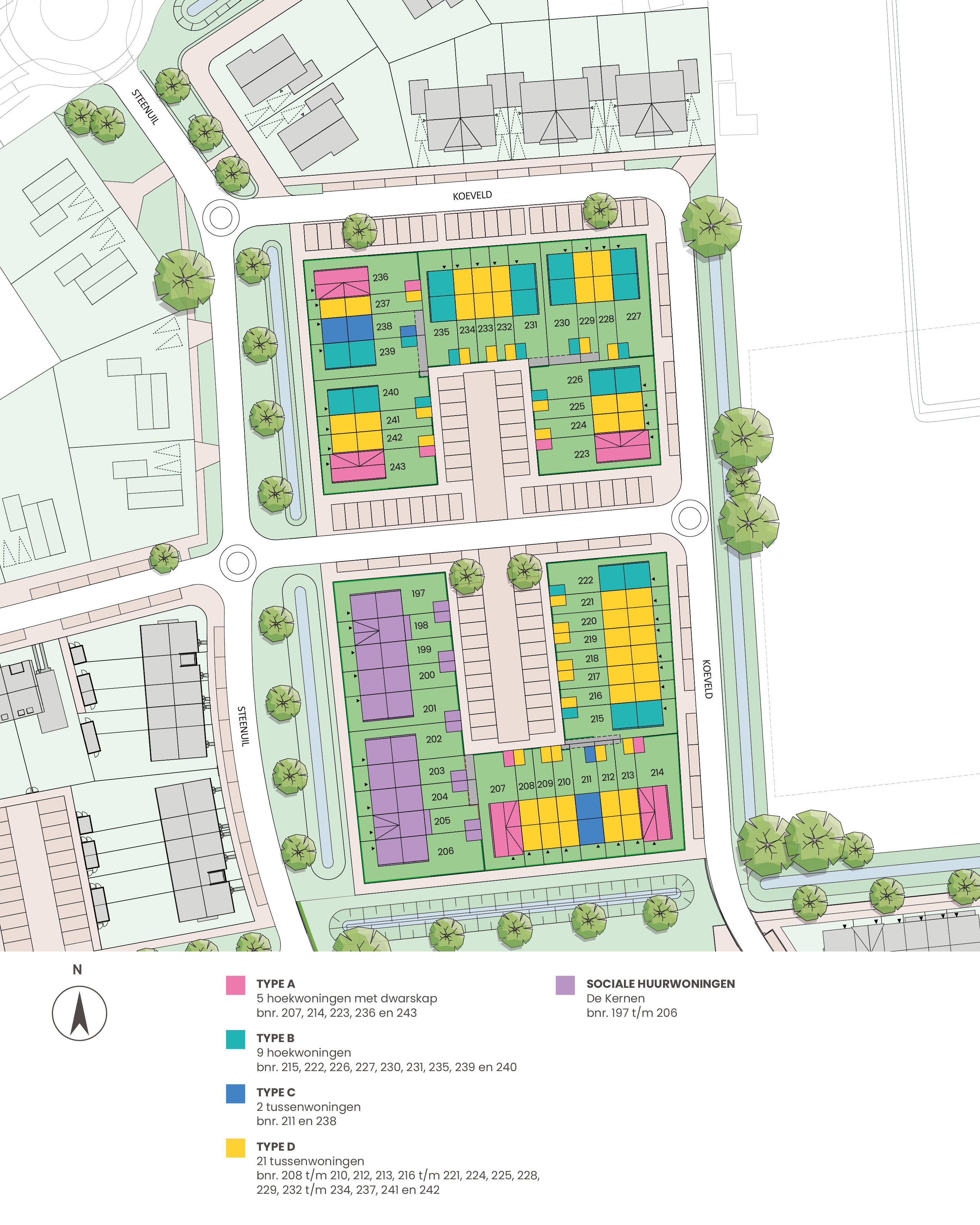 De tussenwoningen type D worden aangeboden via de KoopStart-regeling. Dit biedt een mooie kans voor wie op zoek is naar een betaalbare én duurzame starterswoning in Het Leeuwse Veld. Lees op de pagina hoe dit proces verloopt. De makelaars kunnen je hier ook meer over vertellen. Let op: in de weergegeven v.o.n. verkoopprijzen van de KoopStart-woningen is de koperskorting reeds verwerkt.